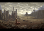 全体的にコントラストが低いことは間違いないと思います。手前の少女のいるエリアと奥の荒地のエリアで差異を出そうとして、暗さを抑え過ぎたところはあります。
