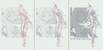 足が短い! と初め思ってしまいましたがこれはロングブーツなんでしょうね。。膝で切れてしまってることと、上のデッサンの件も合わせてそう見えてしまったようです。