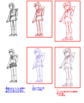 また下描きの段階から、骨格や肉体が直線的で、女性らしさが表現されていないですね。ギャグ漫画なら良いと思われるかも知れませんが、少女キャラがメインなのですから、コレでは物足りないかも知れません。