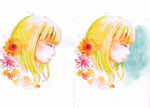 ・色合いについてですが、髪と肌の境目や特に暗いと思われるところは思い切ってもっと強い色をおいてメリハリつけると良くなると思います。(例えばこの作品は暖色系が多いので、メリハリをつけたいところに寒色系を混ぜてみるとか。色合いに深みも出ます。多分。)