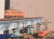 築堤を行く車両