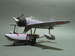 田宮の二式水戦です。キット組立説明書(設計図)の解説(「一説では上面・藤色、下面・暗い灰色の塗装機体があったとの事です。」)に乗って5空キスカ色に塗ってみました。下面の暗い灰色なんですが、フロート下面色として濃い青や軍艦色との資料(作例)もありますが、自分的に買ってはみたものの使用を躊躇っているクレオスNo56明灰緑色(中島下面色)を塗ってみました。ちょっと緑が濃すぎじゃないですか?この色。