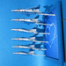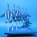 ハセガワの1/72 T-4 ブルーインパルス6機セット(新版)です。せっかくの数なので、展示飛行シーンを再現してみました。搭乗員は同社の米軍パイロット/グランドクルーセットを細工。もちろん脚を仕舞った極楽鳥仕様、AOAトランスデューサは画鋲の先を。
